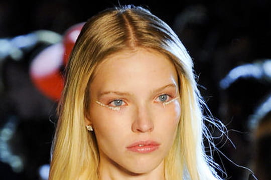 Pour son défile haute couture, Alexandre Vauthier nous offre un look beauté très naturel qui met en lumière l'atout phare du maquillage : l'eye liner pailleté.