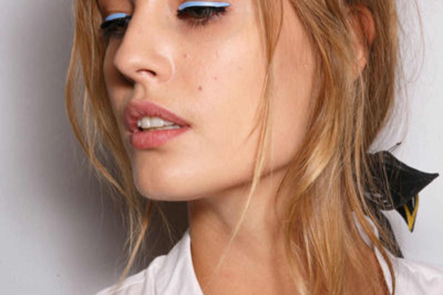 C'est avec les cheveux faussement négligés que les mannequins ont été coiffés avec une queue-de-cheval basse. Attachée par un accessoire dont l'apparence oscille entre le ruban et le bijou, elle laisse s'échapper quelques mèches avec indolence. La femme Fendi évoque le personnage de Roxane dans Cyrano de Bergerac, lorsqu'elle s'immisce sur le champ de bataille pour rejoindre Christian. Un esprit effronté dans un corps délicat. C'est l'allure dont il s'en dégage. Pour exprimer au mieux cette part de féminité qui émane de son visage, ses lignes sont maquillées d'un graphisme raffiné. Un trait d'eyeliner bleu ciel, couleur fétiche de la maison, superposé sur un trait d'eyeliner noir. Cet effet de contraste allie modernité et sensualité tout en soulignant son regard avec intensité. Tandis que la paupière se pare d'un fard beige irisé pour mettre en valeur les nuances de couleurs apposées sur les yeux. Quant à sa bouche, pas d'excentricité, un simple rose à lèvres vient les prononcer d'une teinte naturelle. L'art de faire mouche à l'italienne.