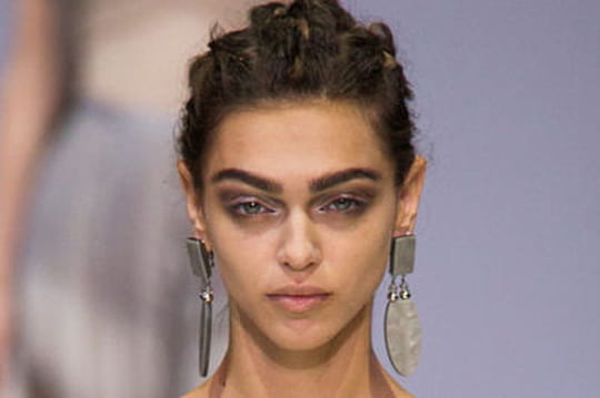 A la fashion week de Milan, une chaleur au parfum d'orient s'installe pendant le défilé Giorgio Armani. Un orientalisme contemporain dont la femme tire tous les attraits. Envoûtante, elle use de ses charmes en utilisant des couleurs aux nuances de velours. Ses sourcils sont épais et donnent du caractère à son visage, tandis que ses yeux, s'habillent de couleurs sensuelles par un jeu de lumière. Une palette de mauve qui part d'un ton plus clair sur la paupière et s'assombrit sur le contour par un violet plus intense. L'œil est magnifié d'un contraste saisissant. Nul besoin de l'accentuer avec du mascara, les teintes irisées qui s'en dégagent, suffisent à l'irradier. Le teint et la bouche sont laissés au naturel pour ne pas venir perturber la beauté du regard. Contrairement aux cheveux qui finissent de couronner cette allure de princesse du désert. Pas de diadème mais un chignon torsadé. Un mélange de style à la fois sauvage et sophistiqué. A l'image des héroïnes de conte de fées.