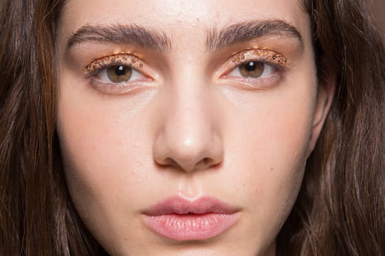Alors que la Fashion Week londonienne bat son plein, Temperley London fait un coup d’éclat avec son maquillage à sequins. Sur le catwalk, les mannequins nous dévoilent une collection riche où se côtoient de lourdes étoffes bariolées et des silhouettes fluides et ornementées. Côté couleur aussi la diversité est de mise : du noir au dégradé de mordorés en passant par la pureté du blanc, c’est une véritable palette de nuances ponctuée par des notes de jaune et de bleu intenses. Pour sublimer les looks de la créatrice britannique, le maquillage oscille, lui aussi, entre sobriété et extravagance. Le teint nude est parfaitement unifié mais sans effet de matière pour révéler une fraicheur juvénile rehaussée par une touche de blush. Les sourcils quant à eux sont légèrement broussailleux, comme laissés au naturel. Les lèvres sont subtilement colorées d’un rose en accord avec leur carnation originelle pour leur donner un effet mordu irrésistible. Mais c’est sur les yeux que se focalise toute notre attention : les paupières sont fardées d’une ombre à paupières orangée et texturisées à l’aide d’un gloss transparent pour un effet "glossy" discret. Exit le mascara, les sequins habillent le regard. Déposés du raz des cils et jusqu’à mi paupière, ils se veulent ornements, presque bijoux. Résultat : le sequin s’impose tout en sobriété et en élégance. Une chevelure libre aux ondulations légères vient compléter cette mise en beauté aussi juste qu’atypique.