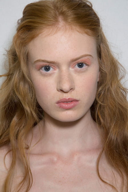 Le teint est aussi aérien que le vêtement, il partage sa transparence et révèle la beauté du grain de peau pour laisser libre court à sa carnation originelle, la rendant un peu plus charnelle d’un soupçon de blush. Alors que le corail vient réveiller les superpositions de robes à fleurs et de manteaux amples qui se succèdent sur le catwalk, il s’appose également sur la paupière en harmonie avec la bouche très subtilement colorée tel un voile translucide et irisé. Une mise en beauté pure qui se révèle au contact du vêtement, dévoilant des visages enjôleurs par inadvertance, poussant à son paroxysme la féminité lorsque la chevelure ondule naturellement au gré du vent, effleurant la peau à chaque pas des mannequins, retombant sur leur poitrine sans faux-semblant. L’Eve sensuelle de Dior s’invite en hiver, irrésistible et cachant son émoi dans son manteau à manche de fourrure.