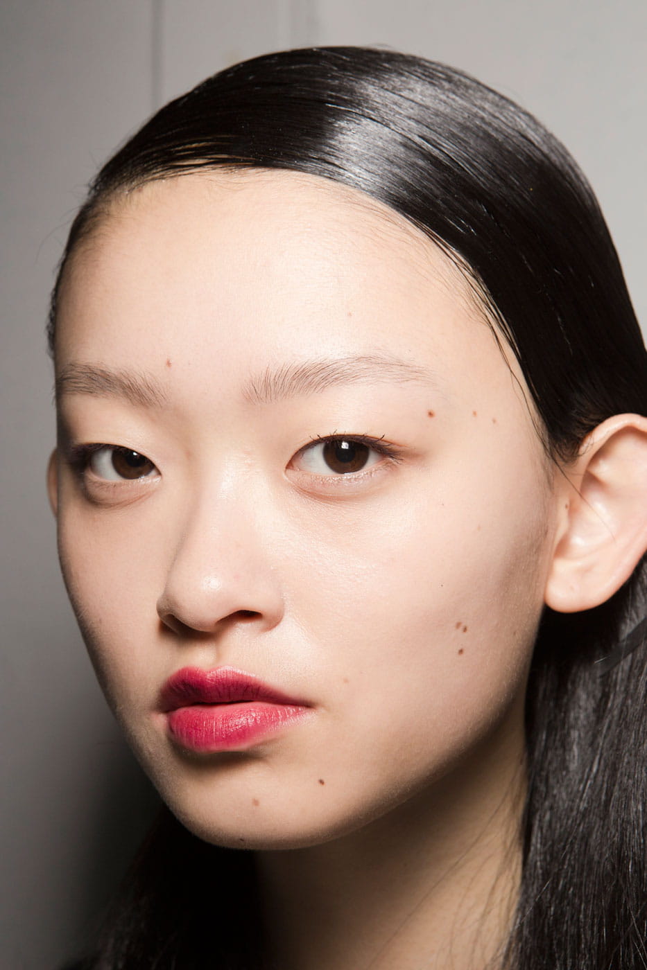 Le rouge à lèvres rose est appliqué avec délicatesse et s'efface presque sur les bouches du défilé Antonio Berardi. Un effet "bouche mordue" tout à fait dans l'air du temps.