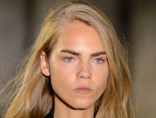 Pour son premier show chez Saint Laurent, Anthony Vaccarello est revenu aux sources de la maison en créant une collection d'inspiration eigthies. Armée de son blouson noir, d'une robe en cuir moulante et de talons aiguilles, la femme YSL nouvelle génération joue de son sex-appeal sans complexe. Et quand elle ne dévoile pas ses jambes, elle porte un pantalon de smoking mais ne peut s'empêcher d'être sexy en portant des hauts de dentelle transparente. Mêlant les codes féminins/masculins, elle erre dans les rues parisiennes avec une fausse désinvolture. La muse Saint Laurent s'amuse de son côté androgyne en complétant sa mini jupe d'un jeu de superposition avec le duo veste en jean, blouson de cuir oversize. Un mélange des genres que l'on retrouve dans le look beauté du défilé prêt-à-porter printemps-été 2017. La femme Saint Laurent se balade sans fard. Seul le teint doit être parfait avec une poudre de soleil sur les pommettes pour sculpter et illuminer le visage. Un baume hydratant sur les lèvres et la voilà prête à battre le pavé. Mais son côté rock n'est jamais très loin et elle n'hésite pas à structurer ses sourcils en les brossant vers le haut pour plus de caractère.