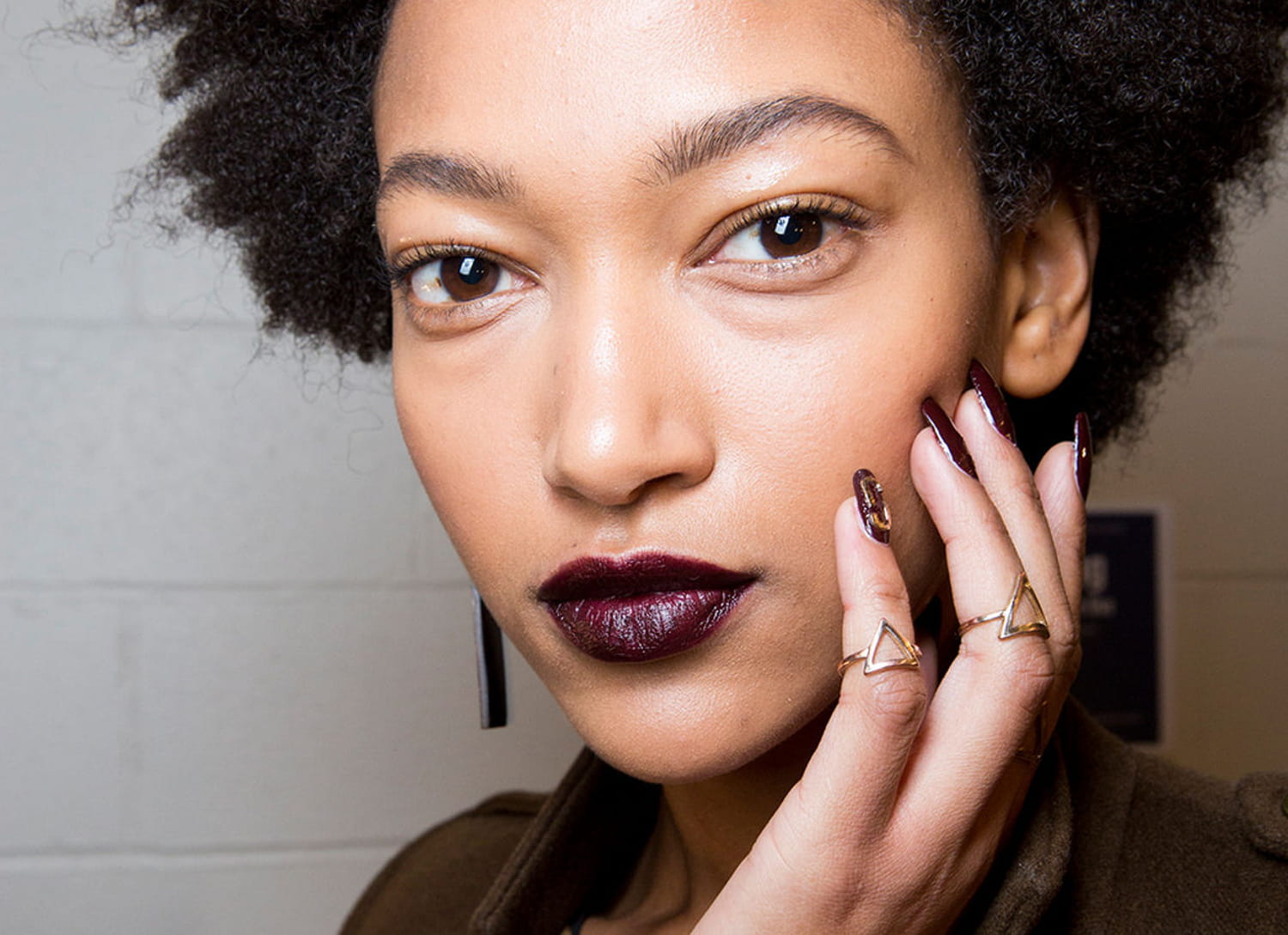 Marc Jacobs a dévoilé sa collection automne-hiver 2017-2018 sous une influence hip hop. Des pièces et des matières très BCBG comme la fourrure ou la laine côtoient des vêtements à l'allure street style tels que des blousons ou des joggings. Ici, le créateur ne choisit pas son clan et démontre que l'on peut associer les deux genres à la perfection. À l'image du vestiaire hétéroclite, les tops affichent différents looks beauté, du plus intense au plus nude. Seul le maquillage du regard est identique. La paupière est laissée nue tandis que les cils sont accentués grâce à un mascara longueur et volume. Pour faire ressortir les teints ébène, un rouge à lèvres ultra foncé est appliqué. Sa teinte lie de vin, presque noire apporte un côté mystérieux mais toujours très élégant. L'hiver prochain, il ne faudra donc pas hésiter à adopter de nouveau, une bouche sombre associée à un regard naturel. Coup de cœur également pour la manucure de la même couleur que le lipstick. Ici, un vernis à ongles prune est appliqué sur des ongles très longs qui scintillent grâce à des touches de doré un brin bling bling.