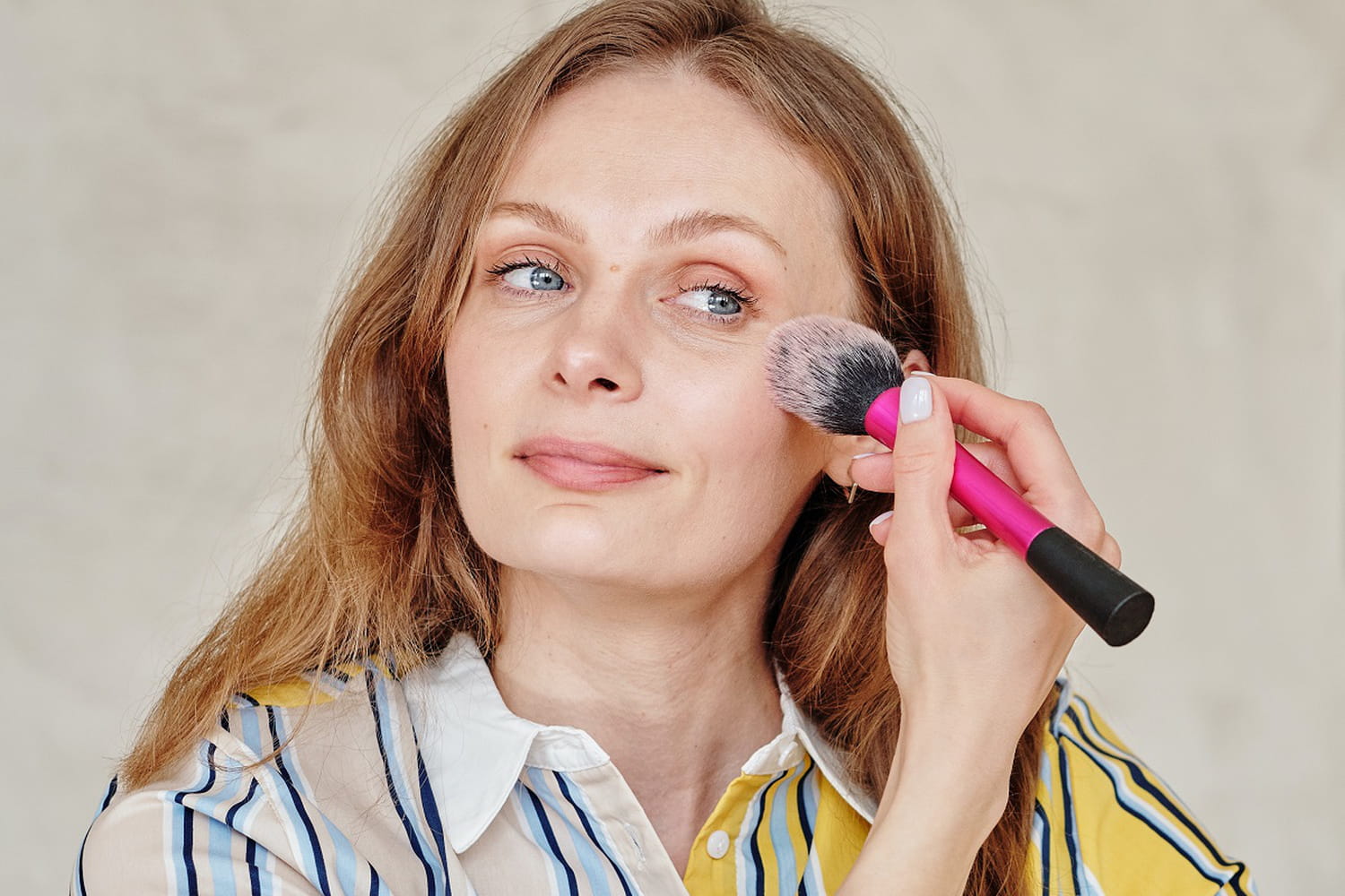 - À l'aide d'un petit pinceau, estompez le correcteur de couleur, puis l'anti-cernes classique pour finir avec l'anti-cernes clair.