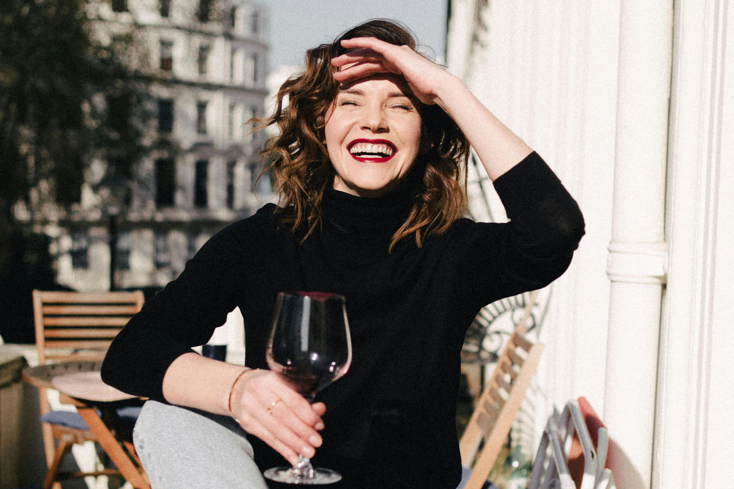 Cette teinte universelle qui n'a pas pris une ride depuis son apogée dans les années 1990, a le mérite de s'adapter à de nombreuses carnations et se révèle plus facile à porter que le noir au quotidien. Elle complète son maquillage des yeux avec un peu de mascara sur les cils. Enfin, elle choisit de terminer sa mise en beauté avec un crayon à lèvres nude qu'elle vient agrémenter d'un rouge à lèvres ton-sur-ton. Un look frais, printanier et adapté à toutes ! Vous laisserez vous tenter ?
