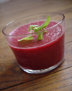 Soupe glacée de betterave au basilic