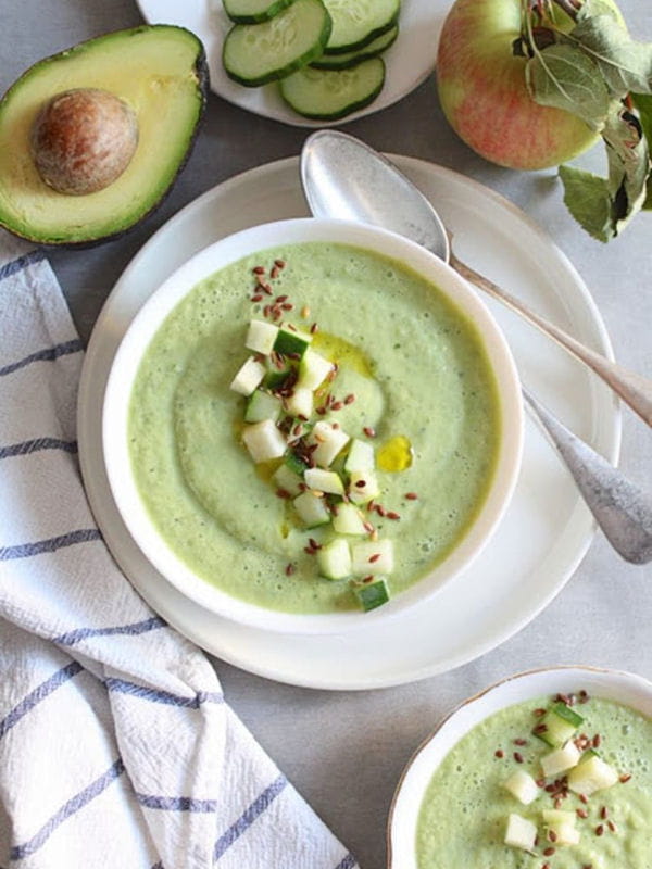 Soupe froide concombre, avocat et pomme