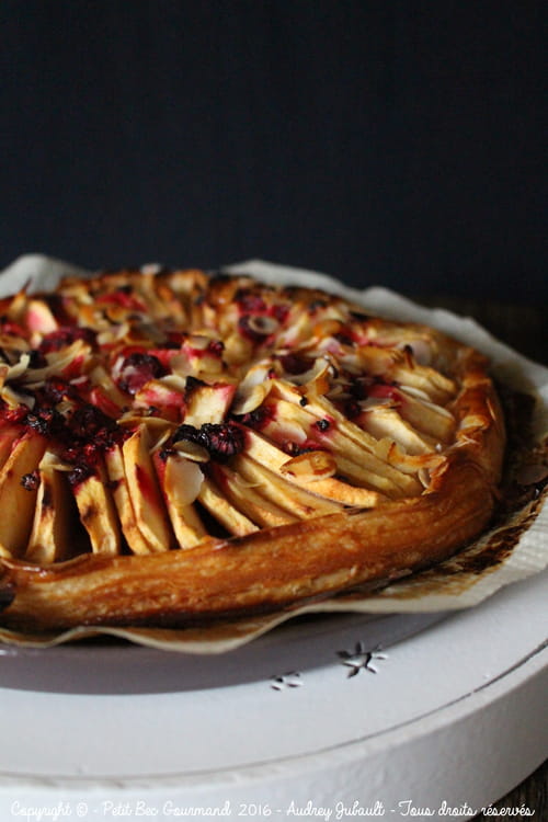 Dessert minceur : tarte fine aux pommes, framboises et amandes