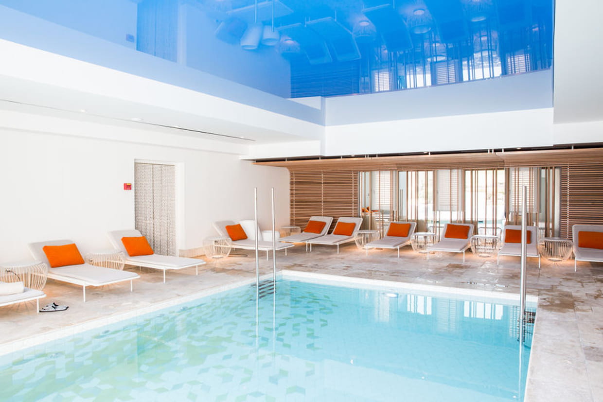 La piscine intérieure dont l'eau se reflète au plafond donne l'impression d'être dans une bulle. Quand on séjourne dans l'hôtel, on peut en profiter au saut du lit pour faire un petit parcours aquatique et profiter des jets de massage tout en ayant une vue imprenable sur les champs de lavande. La sensation de grandeur et d'immensité est déjà là. Hum, on respire....