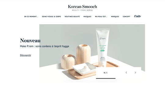 Depuis 2014, Korean Smooch fait la part belle aux cosmétiques coréens, naturels et novateurs. Formules performantes, packagings ludiques et ingrédients haut de gamme... Coup de cœur pour cet eshop made in Korea.