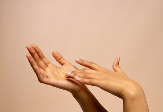 Sur le visage, votre routine de soins est rodée. Chaque jour, vous savez exactement quel produit appliquer à quel moment, et sur quel actif miser pour lutter contre les signes du temps qui passe. Est-ce le rétinol ? Les peptides ? Le collagène ? Ou même l'acide hyaluronique ? A chacun sa recette magique, après tout aucune peau ne se ressemble. Mais s'il y a bien une zone que l'on oublie fréquemment de chouchouter, ce sont nos mimines. "Les mains, le cou et le décolleté sont souvent des endroits qui trahissent l'âge d'une personne", explique Saami Khalifian, un dermatologue californien, au magazine américain Allure. Pourtant, nos mains subissent des dommages quotidiennement : le soleil, le vent, le liquide vaisselle, les savons agressifs et même les produits ménagers. Bref, elles reçoivent rarement l'amour qu'elles méritent pourtant. Résultat : ce sont les premières à montrer des signes de l'âge tels qu'un relâchement cutané, et des taches brunes (promis, cet article devient plus joyeux après).