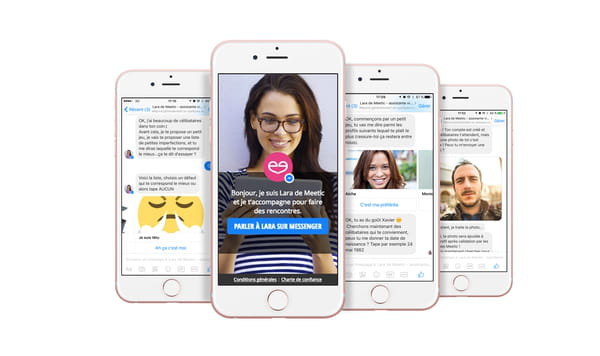 "Meetic a saisi l'opportunité du lancement des Messenger Bots de Facebook pour adapter ce nouveau mode de communication à la rencontre entre célibataires. Grâce à l'intelligence artificielle, nous pourrons les accompagner de manière personnalisée et instantanée. Comme toujours pour nous, la technologie s'effacera ensuite pour laisser place à la rencontre", commentait Alexandre Lubot, CEO de Meetic-Match Group Europe, lors du lancement. Voilà comment au fil d'une conversation décontractée et personnalisée, les petits robots Meetic, nommés Lara et Tom, vous accompagneront désormais. Ils faciliteront la création de votre profil, grâce à toutes les infos échangées en live, et vous présenteront des célibataires qui correspondent le mieux à vos critères de recherches. Car oui, pour l'instant, le service est destiné aux personnes non inscrites sur Meetic. Mais Tom et Lara pourront bientôt répondre aux questions des inscrits, qui s'interrogent en naviguant. Pour l'heure, s'ils cherchent l'amour, on leur propose de se connecter directement sur leur compte, où des milliers de célibataires les attendent.