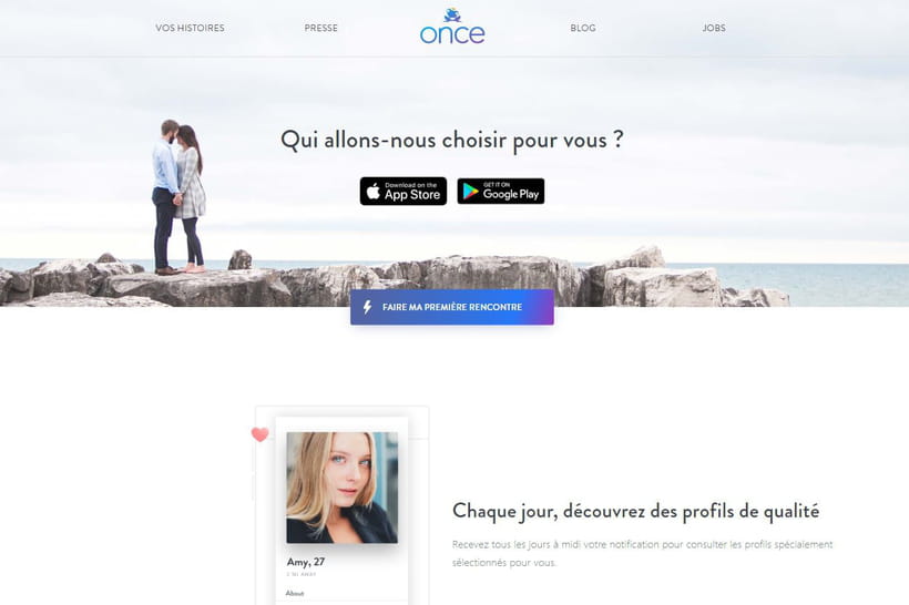 - Once, l'appli qui propose (seulement ?) un prétendant par jour