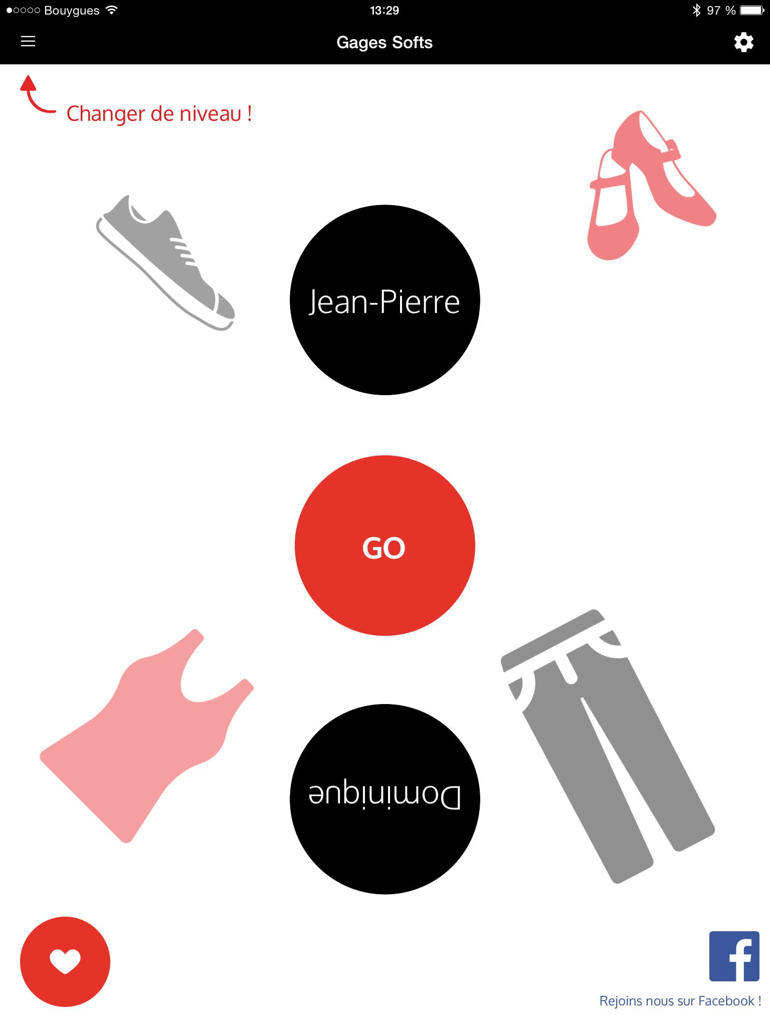 Un nom on ne peut plus clair : avec Jeu Sexe, on joue sexe, à travers des gages d'actions ou vérités. On entre nos deux prénoms, Dominique et Jean-Pierre, et on actionne le bouton "go" qui tire au sort l'un de nous et nous laisse choisir entre action ou vérité. Voilà que Jean-Pierre se lance dans une petite danse sexy tandis que Dominique dévalise le congélateur afin de choper quelques glaçons à glisser sur le corps de JP. On adore.