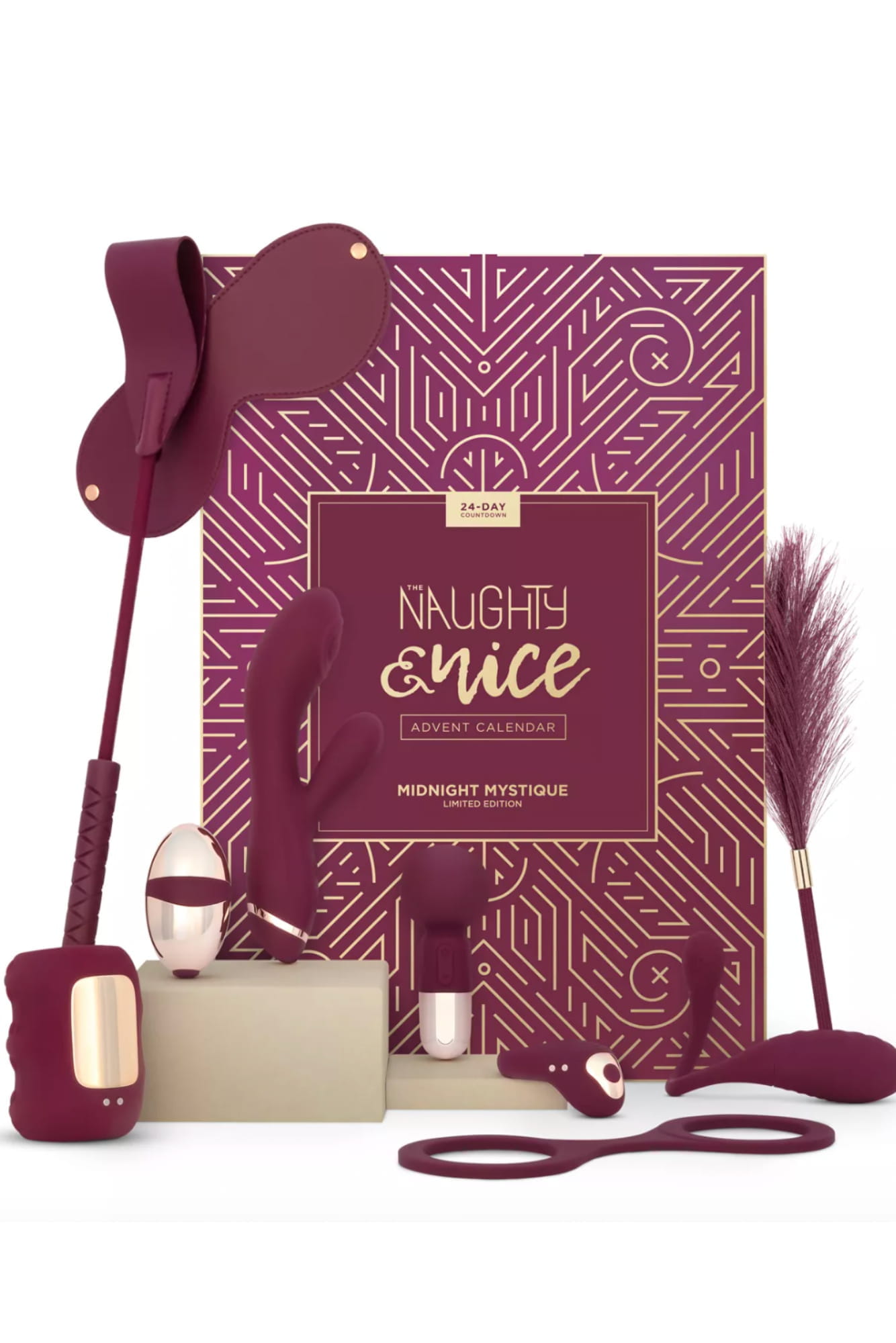 Malgré ses jolies couleurs or et bordeaux, ce n'est pas votre décoration que ce coffret va réchauffer ! Avec son édition "Midnight Mystique", le calendrier de l'Avent Naughty and Nice promet des nuits riches en sensualité. À l'intérieur se cachent 24 surprises, dont 8 sextoys et 5 accessoires de bondage pour s'initier en douceur au BDSM. On préfère vous prévenir : vous risquez de perdre le sommeil !
