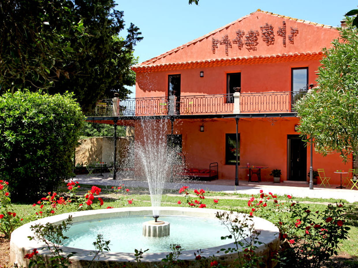 Près de Nîmes, un bassin rond, agrémenté d'une fontaine, est cerclé de rosiers rouges, en parfaite harmonie avec la façade de la maison. Voir le reportage