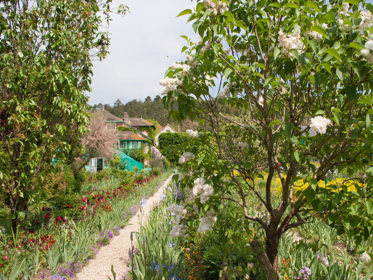 Le jardin de Monet à Giverny était un verger avant que l'artiste ne le revisite et le façonne. L'allée, longue et étroite, côtoie des arbres d'ornements, des iris ainsi qu'une pelouse tondue à l'anglaise. Le chemin du bonheur. Voir le reportage