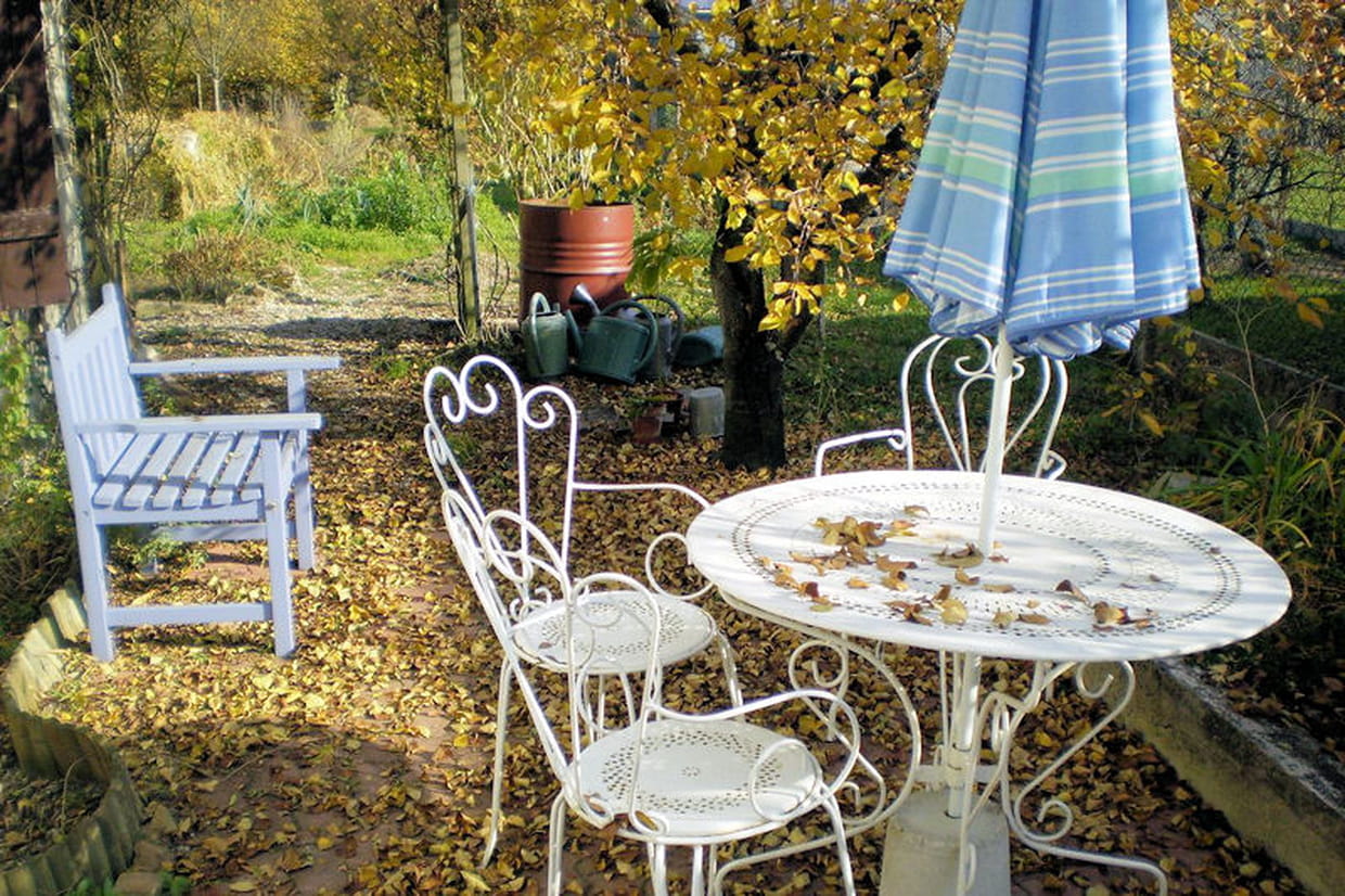 Dans le jardin de Denis, les feuilles mortes ne ramassent pas à la pelle... Bien au contraire, elles offrent un bel habit d'automne à la terrasse.