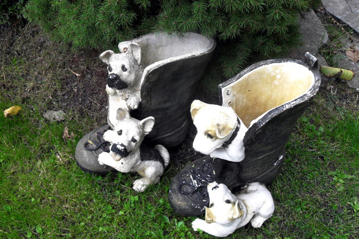 Il n'y a pas que ces petits chiots qui peuvent se vanter d'aller se réfugier dans ces bottines. A l'instar des escarpins, des boots et des baskets, vous pouvez disposer vos plantes dans ces chaussures, ou même des petits arbustes.