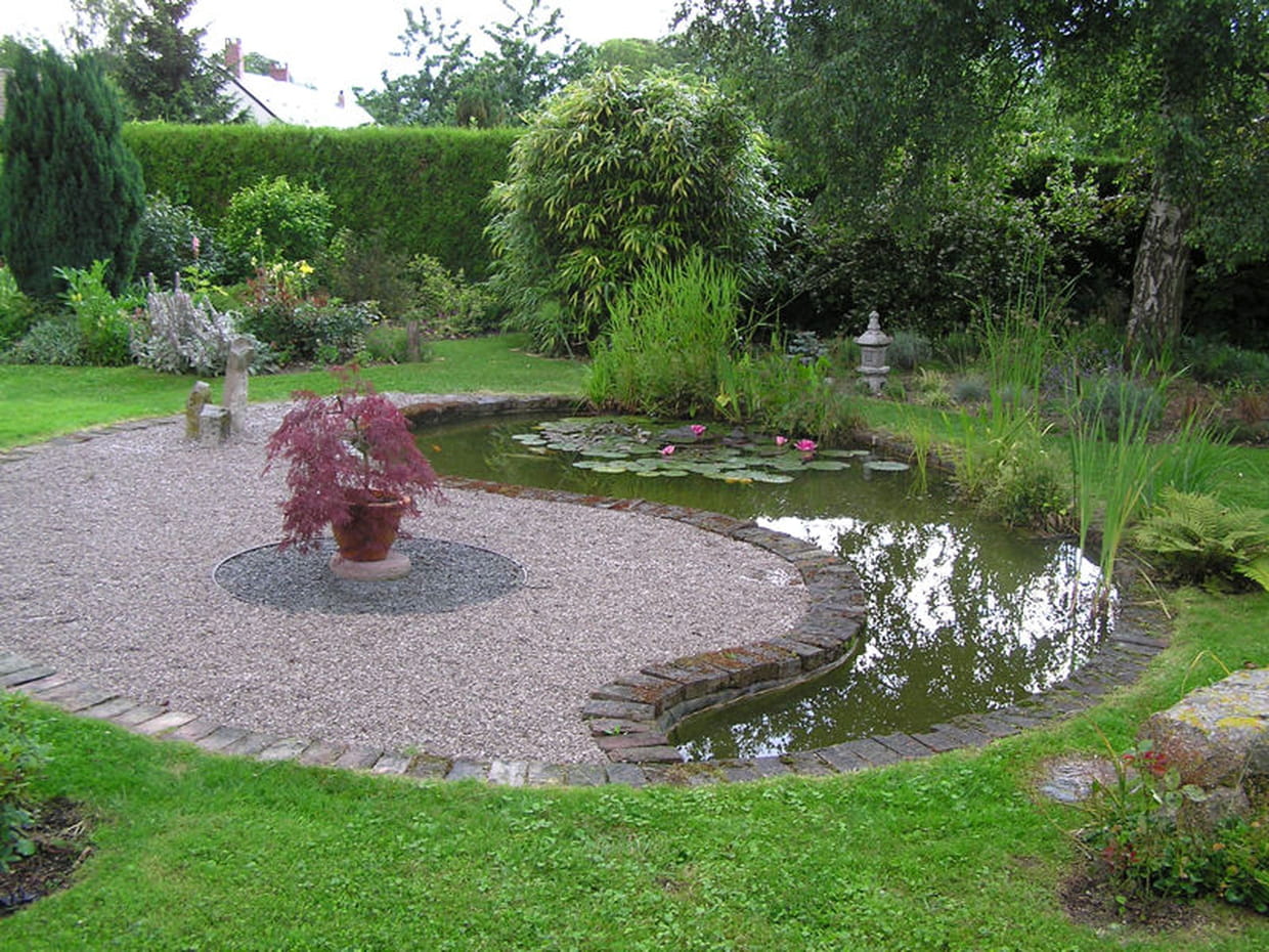 Dans la Creuse, Noël a articulé le centre de son jardin de façon cylindrique autour du bassin à carpes en forme de yin et de yang. Le yin représente ici le bassin et le yang est recouvert de petits graviers ratissés. Zénitude assurée !