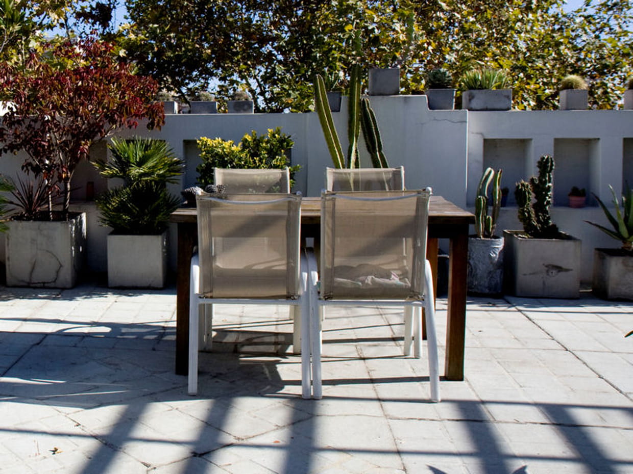 Cette terrasse aménagée est décorée de plantes en tout genre, dont des plantes grasses, des plantes aux feuillages persistants et des cactus. Cette salle à manger sur les toits est constamment ensoleillée et permet de déguster de bons petits plats tout en profitant du soleil. Voir le reportage