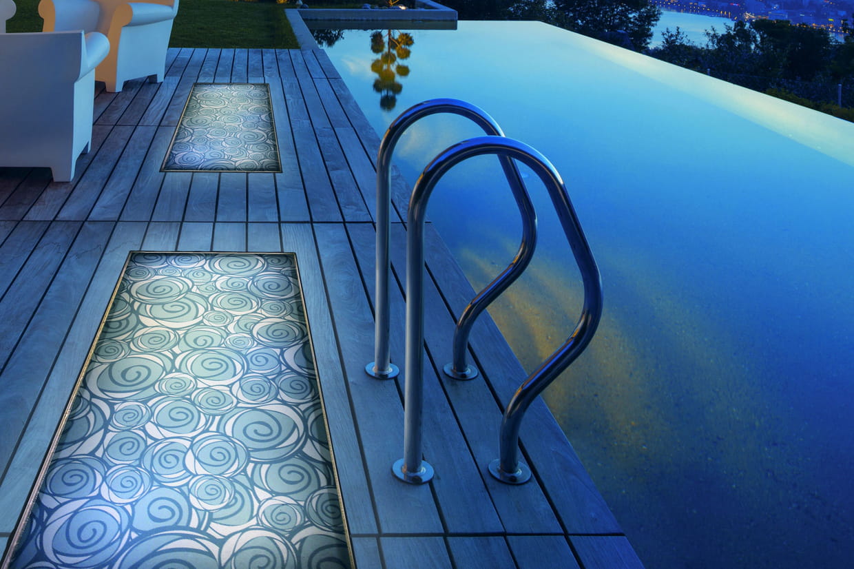 Illuminez les abords de votre piscine avec un éclairage original pour créer une sublime ambiance. Conçu par Altiis, ce module décoratif directement encastrable dans le sol est une solution d'éclairage inédite qui apporte une touche déco très artistique aux abords du bassin de piscine.
