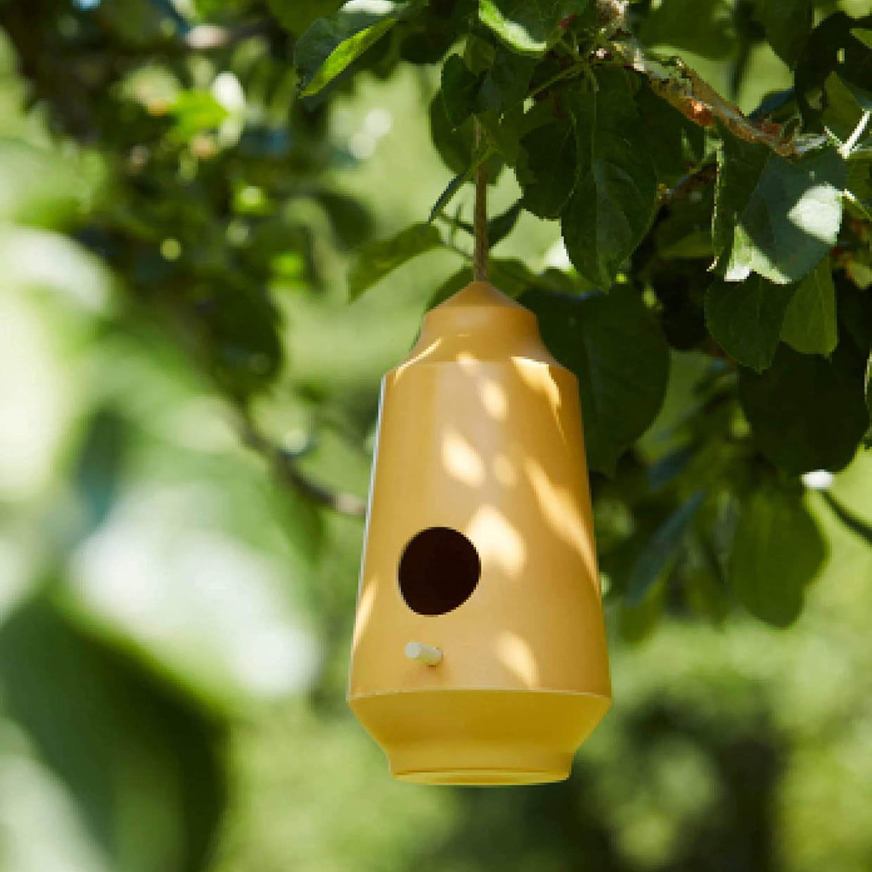 Créez un petit coin de paradis pour les oiseaux tout en respectant l'environnement grâce à ce nichoir en fibre de bambou jaune. Prix : 21,90 euros. Où l'acheter ? greenweez.com