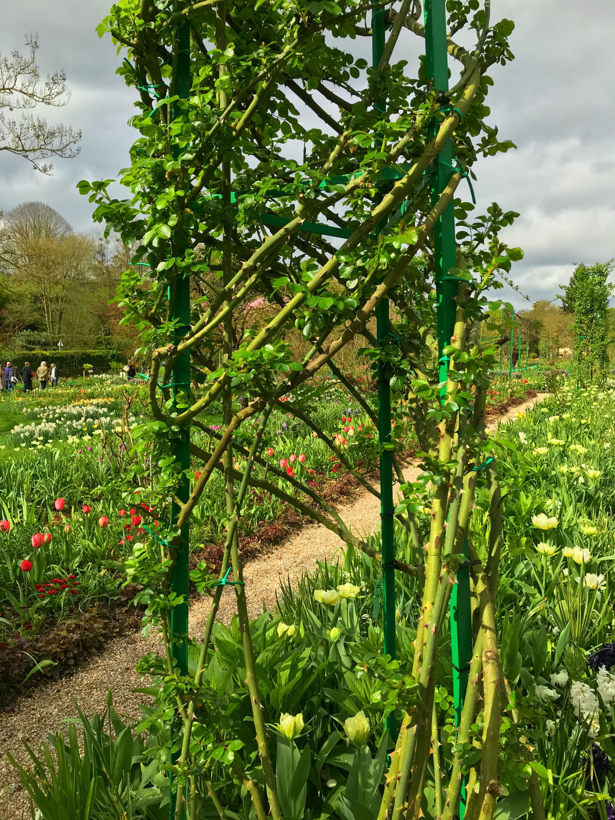 Afin de structurer le jardin et lui offrir une belle perspective, quelques arches accueillent des rosiers grimpants. Patience.... il faudra attendre encore quelques temps pour voir fleurir celui-ci.