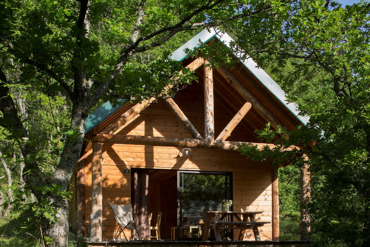 Au cœur de la forêt de Rambouillet, le domaine Huttopia propose des cabanes façon chalet. On pourra profiter de la terrasse pour s'offrir une vue sur la verdure environnante. Réservation sur AbracadaRoom