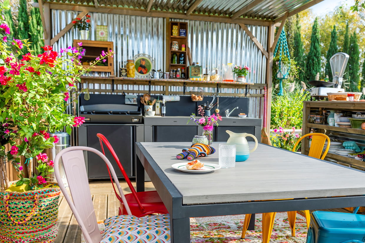 Pour couper le vent et offrir une terrasse plus abritée des intempéries, il est temps d'aménager la pergola pour la fermer. On peut alors imaginer de fixer de la tôle, solide et économique.