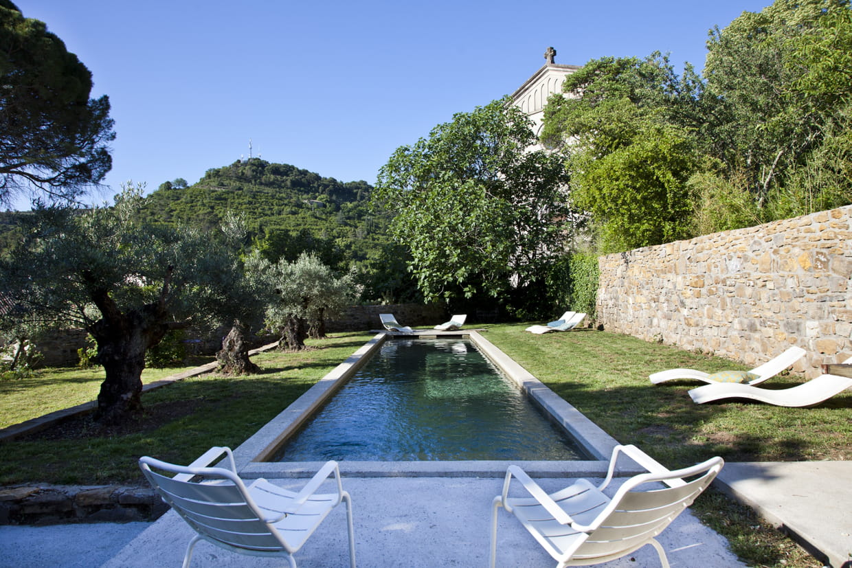 Une piscine bordée d'oliviers