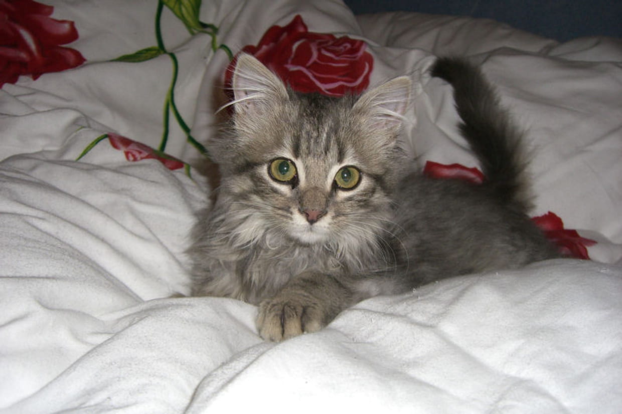 Pixie signifie "farfadet". Malgré ce petit nom et cette bouille d'ange, les débuts entre le chat et sa maîtresse Ophelia n'ont pas été simple. "On a dû mettre des gants en cuir et batailler une demi-heure avant de l'attraper ! Il crachait, griffait et était tout malade. On me l'a posé sur le lit, j'ai été la seule à pouvoir caresser cette boule de poils gris angora. Mon choix était fait, c'était lui ou rien !"