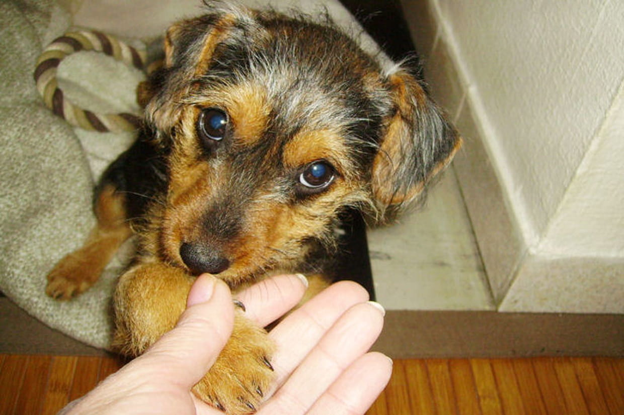 Inconsolable après la disparition de son boxer, Christiane a décidé d'adopter ce chien au gabarit légèrement moins imposant. A la vue de cette photo, on comprend vite comment elle a pu craquer pour ce petit yorkshire croisé terrier.
