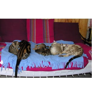 Ici, nous avons tous investi le canapé, avec nos 3 cousins de 2 mois et notre grand-mère, qui a une robe snow (crème) comme Emir, qui se trouve à l'extrême droite. Etoile, lui est le 2eme chat en partant de la gauche.