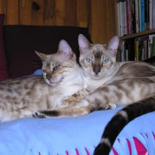 Voici Emir, à droite, à 5 mois, avec sa grand-mère, Blue. Remarquez leur yeux bleus splendides !