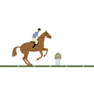 L'appel : le cheval contrôle sa battue. Il frappe le sol des antérieurs, puis les lève, ses postérieurs rentrés sous sa masse. Le cavalier veille à entretenir le mouvement en avant, à garder l'équilibre et se prépare... au décollage !