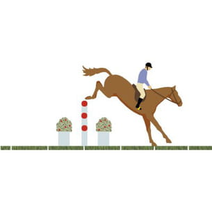 Réception © Dessinateur Th. Deletraz, Extrait de l'ouvrage "Le Grand Livre Hachette de l'Equitation", de Aude Lhérété-Bonneau, Jean-Pierre Laborde, Elodie Morel, Jean Pierre Tuloup, paru chez Hachette Pratique