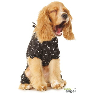 Le pyjama Midnight permettra à tous les chiens de dormir au chaud. En coton, il a l'avantage de protéger l'animal du froid sans pour autant être trop chaud. De plus, et ce n'est pas négligeable, il se pare d'un ravissant imprimé lunes et étoiles et d'un petit nœud très mignon !