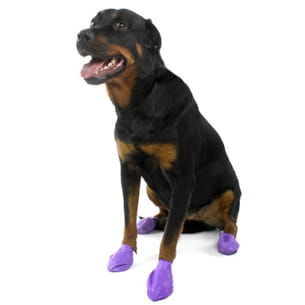 En caoutchouc donc imperméables, réutilisables et faciles à enfiler, elles le protègent des agressions de la neige et du sel qui lui brûlent les coussinets. Elles sont disponibles en 6 coloris correspondants aux tailles des pattes, et vendues par boîtes de 12.