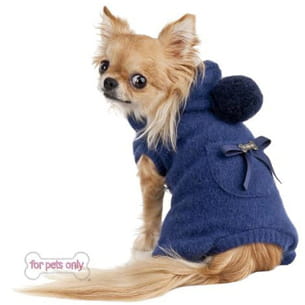 Bien souvent, les vêtements pour chien ne couvrent que le dos et les épaules de l'animal. La combinaison "4 my boyfriend" de For Pets Only comporte une capuche et couvre les quatre pattes du chien, pour protéger les plus frileux. Avec sa belle couleur bleue et son adorable pompon, elle rendra encore plus adorable la plus mignonne des chiennes.