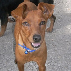 Nickie, femelle pinsher. Stérilisée et tatouée (n° 2 FKA 773).