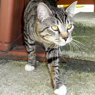 Zazou, mâle européen tigré et blanc. Tatoué (n°GYV035) et castré.