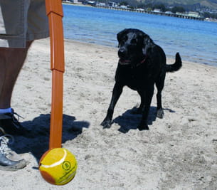 Le Ball Blaster peut facilement se ranger dans la boîte à gants des voitures, dans les sacs à dos ou tout autre espace de rangement de votre choix. Il suffit de l'étendre et de lancer la balle pour garder votre chien en pleine activité. Fournie avec le lanceur, sa balle dentaire est spécialement conçue pour être douce envers les crocs de votre chien.