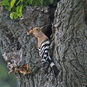 La Huppe fasciée se reconnaît à son plumage et à sa huppe érectile rousse bordée de noir, souvent dressée © Alex et Marie Beauquenne