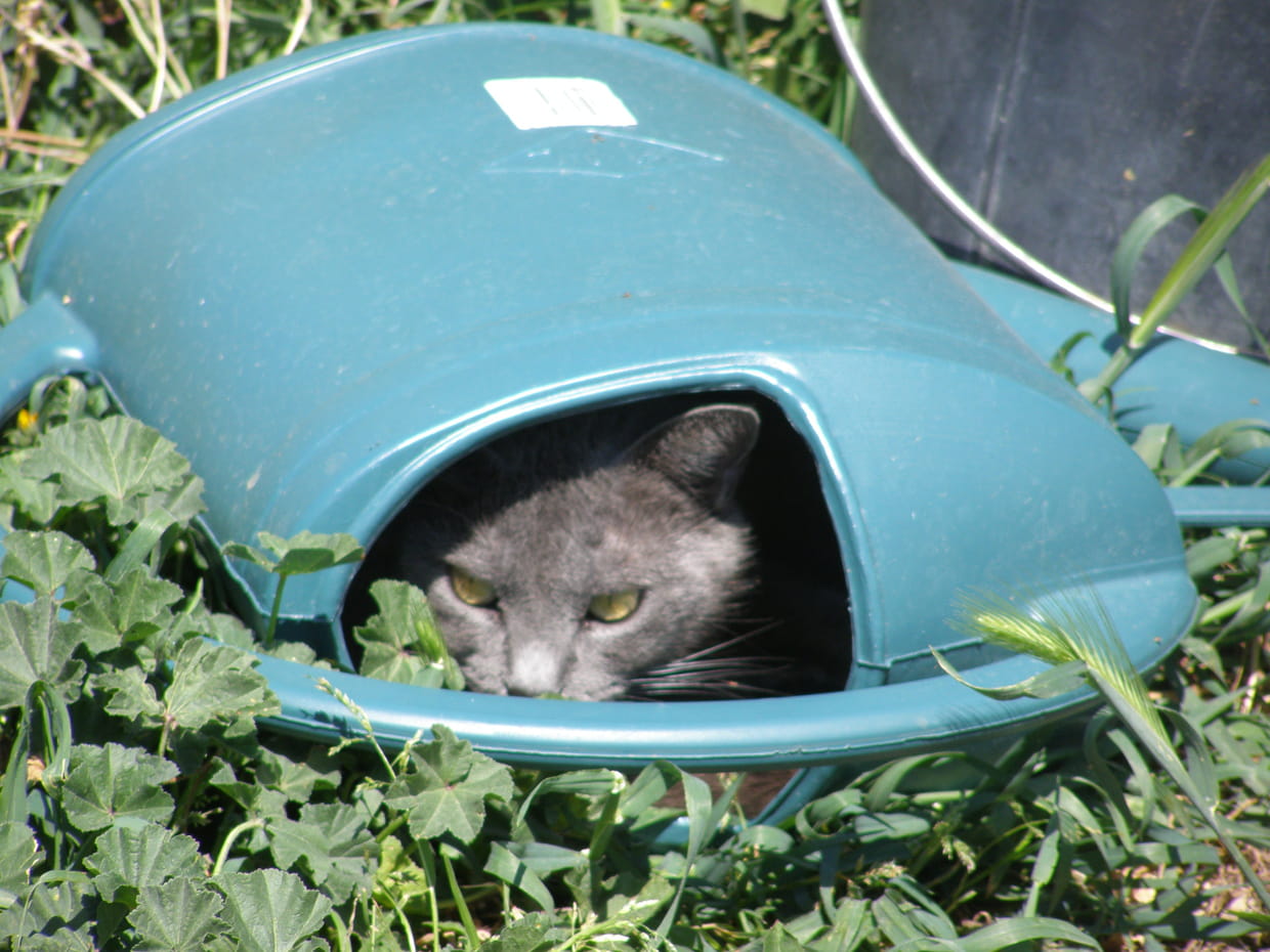 Embusqué dans son arrosoir, ce chat semble attendre sa proie. Voir le témoignage