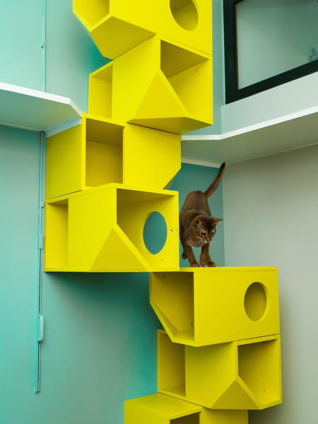 Vous êtes Parisien(ne) et devez vous absenter ? Pour une raison X ou Y, Moumoute votre chat ne peut vous accompagner. Que faites-vous ? Où laisser votre minet adoré ? Chez le voisin, la gardienne, la tantine ? Non. Laissez-le séjourner chez Aristide : le premier hôtel imaginé rien que pour son confort lui réserve un accueil au poil. "Avec la complicité de notre félin bêta-testeur Aristide, nous avons voulu créer un concept novateur qui dépoussière l’image de la pension et donne des idées d’aménagements de l’espace pour procurer du bonheur aux matous – le tout sans renoncer au design !", explique Gauthier Berdeaux, fondateur de l’hôtel Aristide. Qui croirait, en voyant cette petite façade du passage Ambroise Thomas, que l’hôtel dispose de 250 m², répartis en 25 chambres, 2 suites, sans cage ni grillage et d'une play room. L’espace a été conçu en 3D sur les conseils d'un architecte d’intérieur et de plusieurs vétérinaires comportementalistes, afin qu’il réponde aux besoins de ces hôtes, si particuliers.