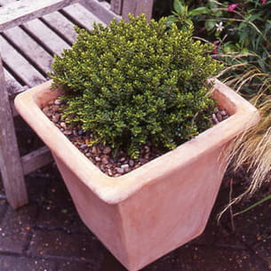 Les arbustes persistants tels que les Hebe font de belles potées. Achetez une plante au feuillage sain et à la silhouette harmonieuse et évitez les sujets qui présentent de nombreuses racines sortant de la base du pot.