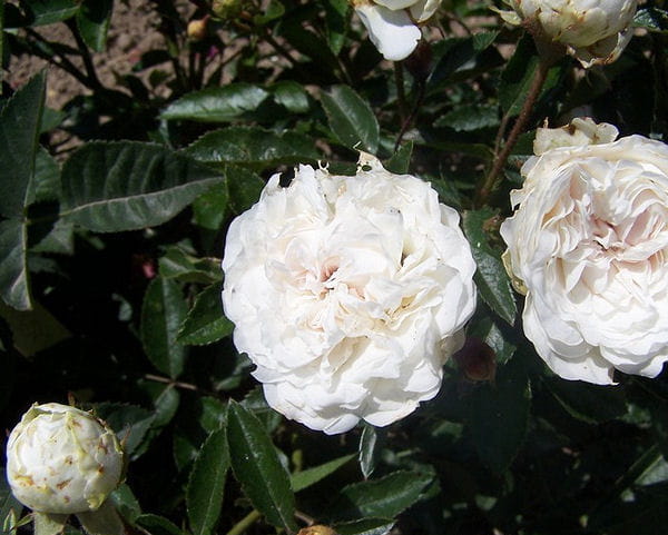 La variété Souvenir de Mademoiselle Juliette de Bricard est un rosier blanc, de petite taille mais très florifère. Il est idéal pour les bordures et en pot (pour une terrasse ou un balcon en ville, par exemple). Son bouton très rond et presque vert s'ouvre en fleur rose pâle tirant sur le blanc.