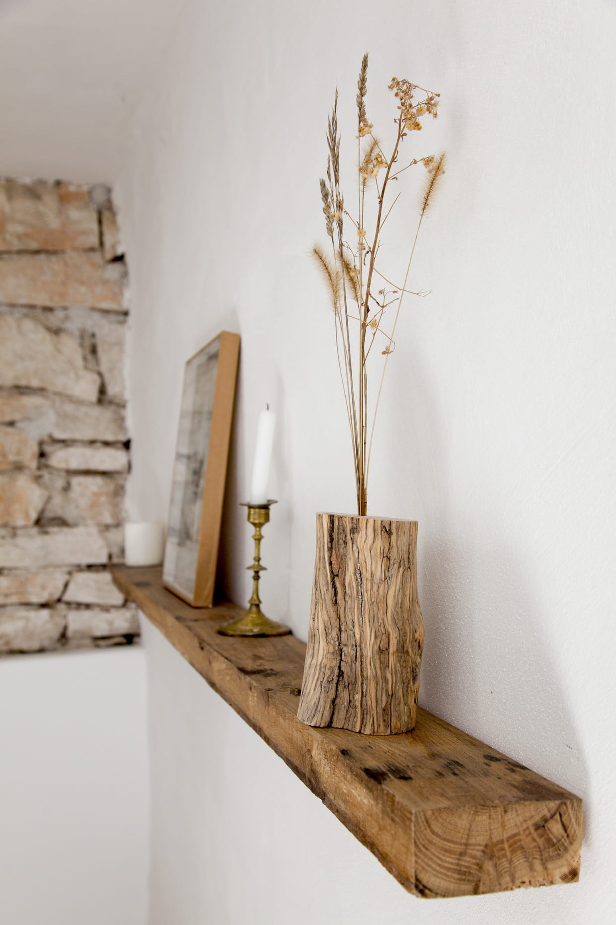 Détourné en vase par le propriétaire des lieux, ce morceau d'olivier accueille quelques branchages disposés à la manière d'un soliflore. Visitez cette ancienne ferme métamorphosée
